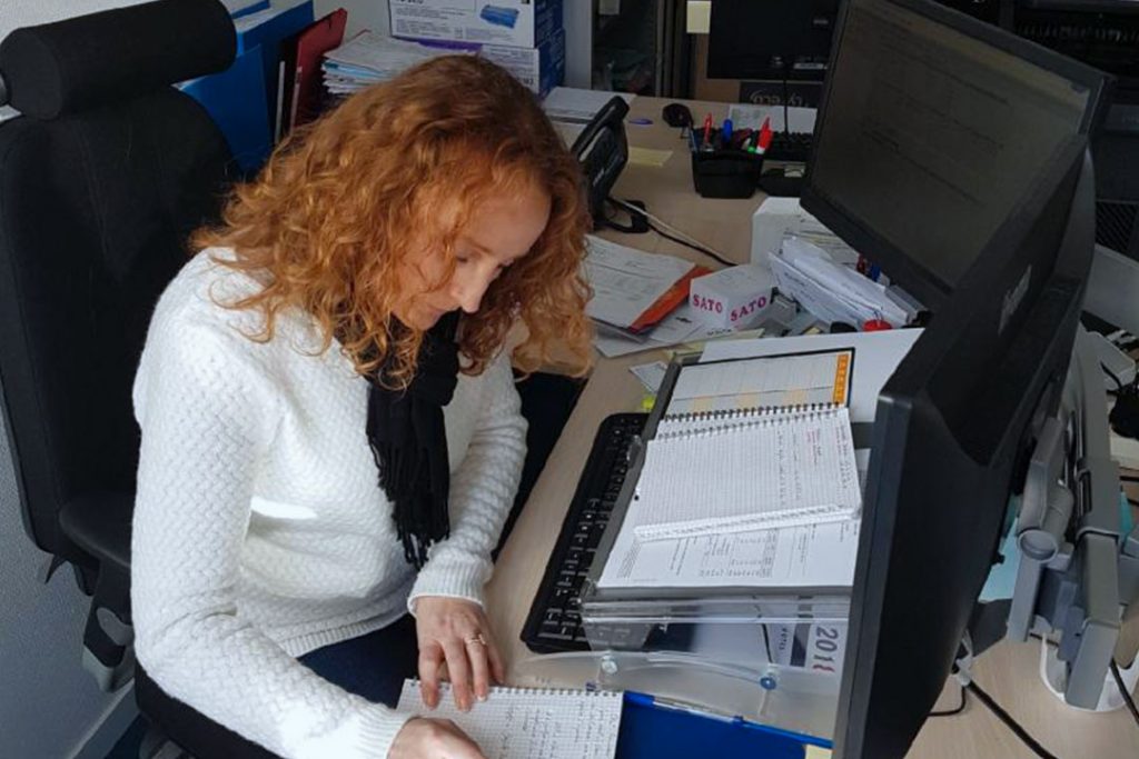 Le handicap de Carine nous a conduit à aménager son environnement de travail :