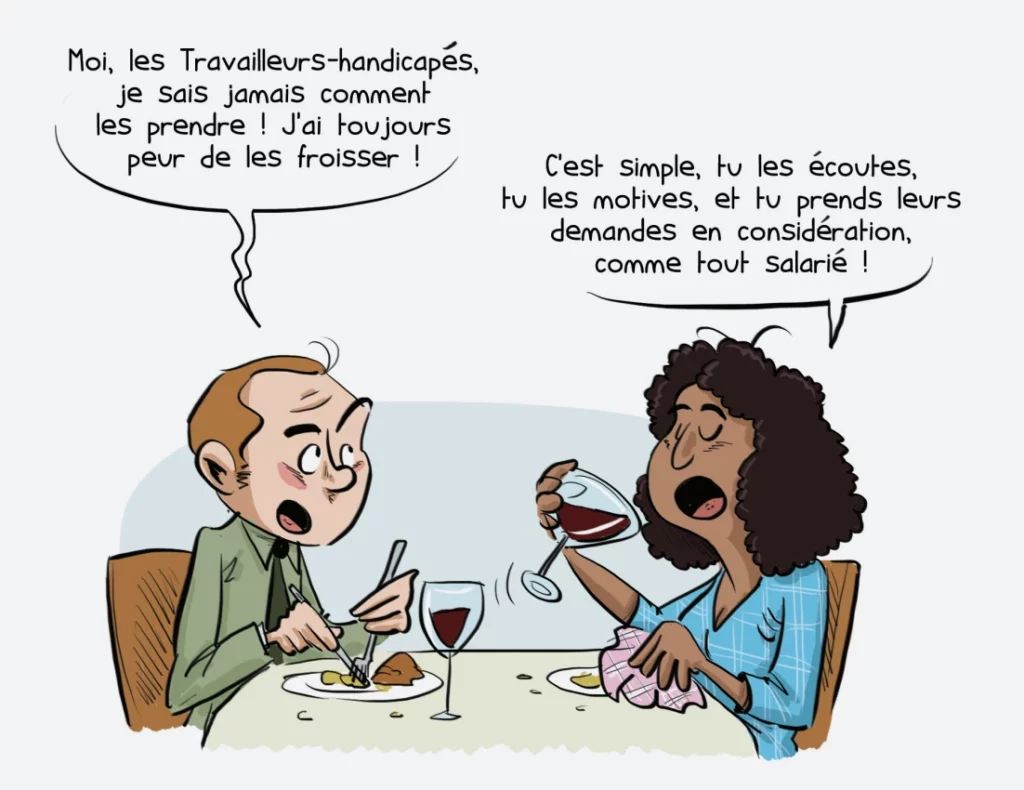 Extrait de la BD « Le handicap au travail : une affaire drôlement sérieuse »- Conception : ORS BFC et M. Choubi